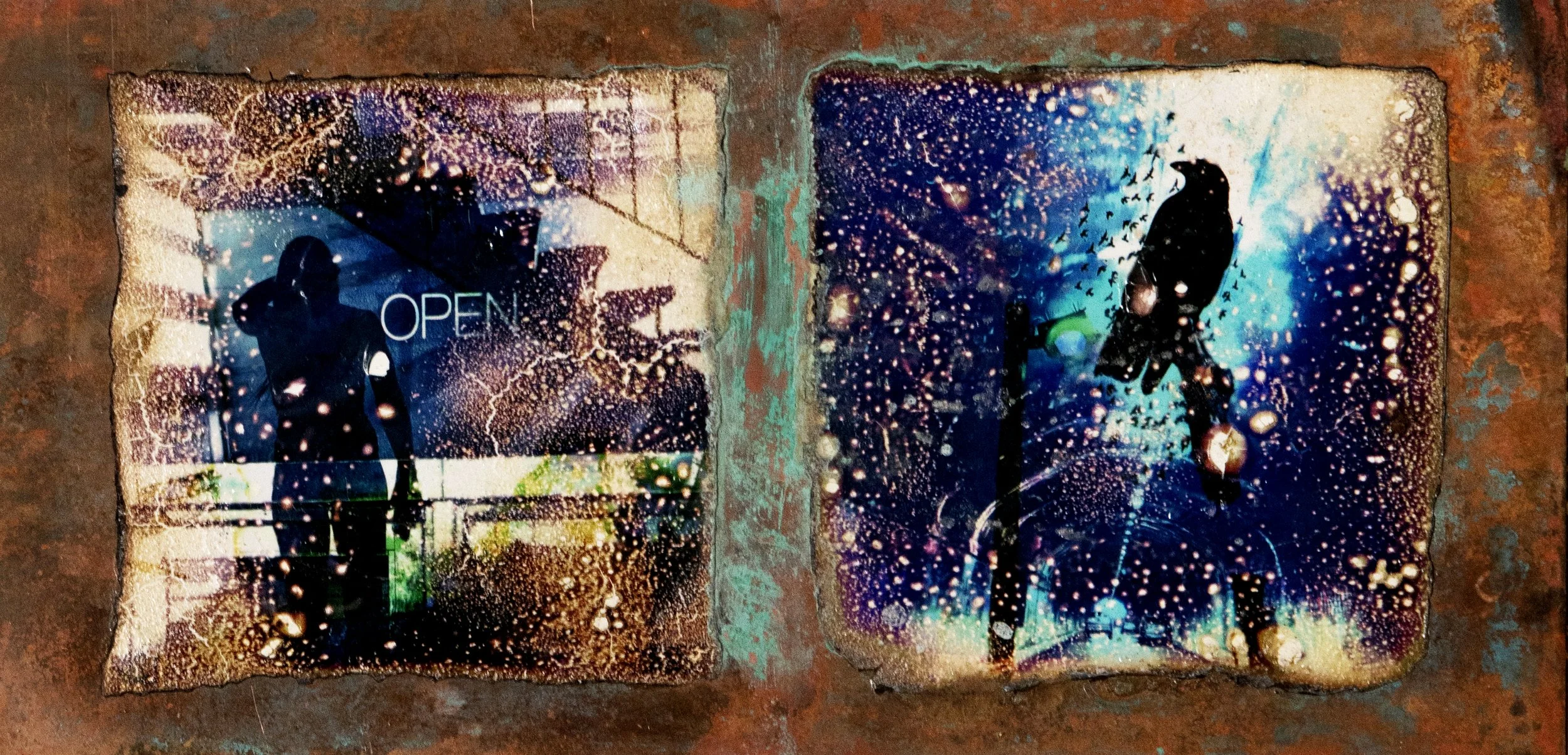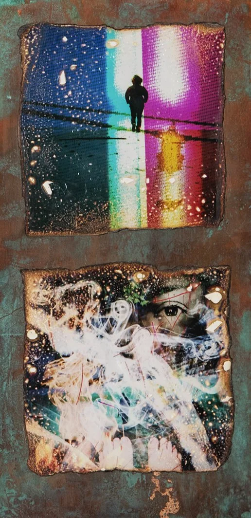 In the quiet moments in between I played with these images, layering, duplicating, distressing and coloring them. I let the imagery take me where it felt it wanted to go.